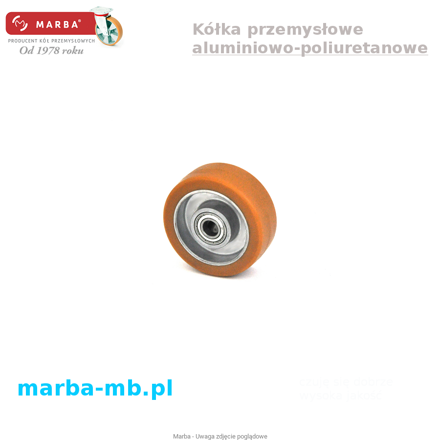 Trwałe połączenie wylewanego wysokiej jakości poliuretanu MARBATHANE 92 shore A z piastą aluminiową koła przy zastosowaniu specjalnych klei, twardość 92º ShA, elastyczny, chroni posadzki przed zniszczeniami i zabrudzeniami. Wytrzymały na ścieranie, przecięcia i dalsze rozrywanie, cichobieżny o małych oporach toczenia. Przeznaczenie: profesjonalne zakłady przemysłowe.