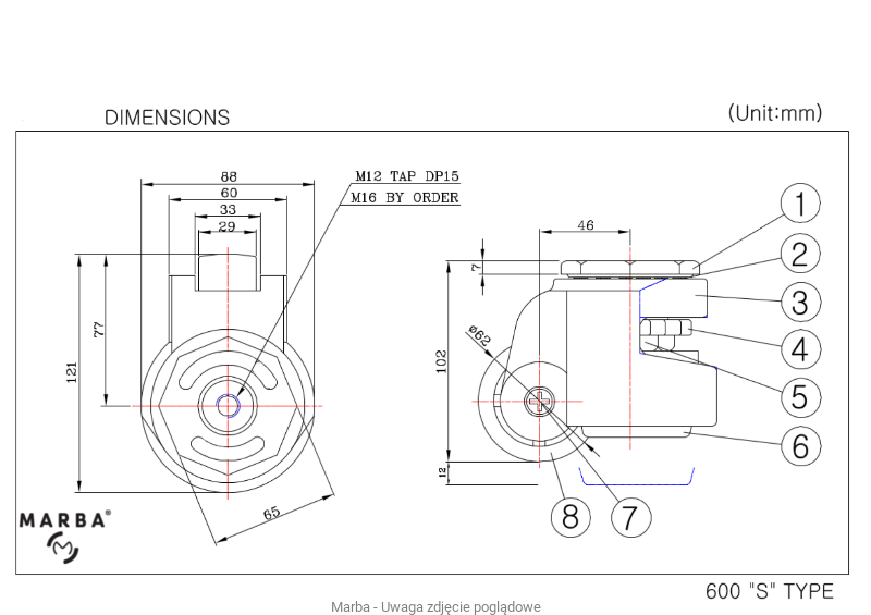 - otworów mocujący: M12