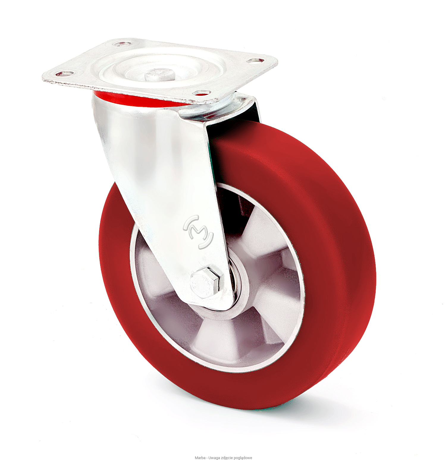 trwałe połączenie nalanego poliuretanu z piastą aluminiową koła przy zastosowaniu specjalnych klei, twardość 75º ShA, gruby bieżnik ze specjalnego elastycznego poliuretanu zapewniający duży komfort użytkowania na wszystkich rodzajach posadzek, nie niszczący oraz nie brudzący, bardzo dobra wytrzymałość na ścieranie, przecięcia i dalsze rozrywanie, cichobieżny o małych oporach toczenia.