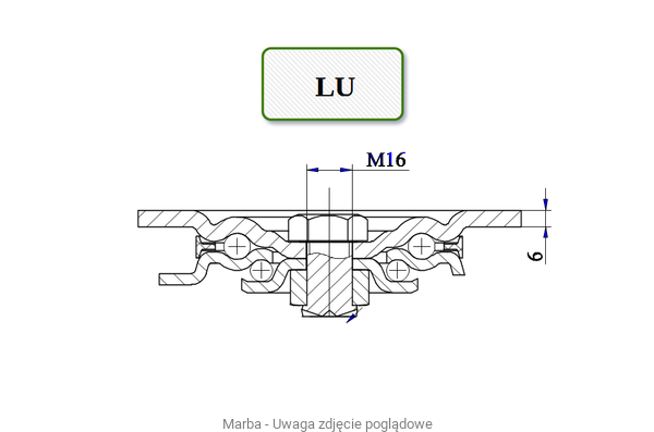 Koło : bieżnik z poliuretanu „MARBATHANE”®, niebrudzący, duży komfort jazdy, twardość 92° ShA, elastyczny, nie niszczący oraz nie brudzący posadzek, wytrzymały na ścieranie, przecięcia i dalsze rozrywanie, cichobieżny o małych oporach toczenia.