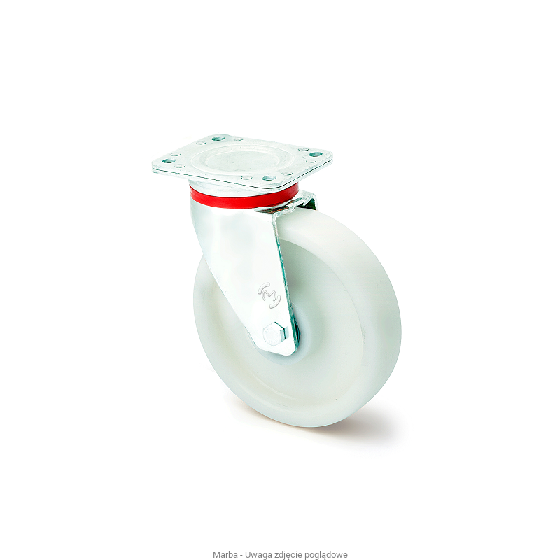 Koło : z wtryskiwanego poliamidu PA6, o bardzo niskich oporach toczenia i wytrzymałości na wiele czynników chemicznych. Temperatura pracy od -40ºC do +80ºC. Koła do gładkich nawierzchni.