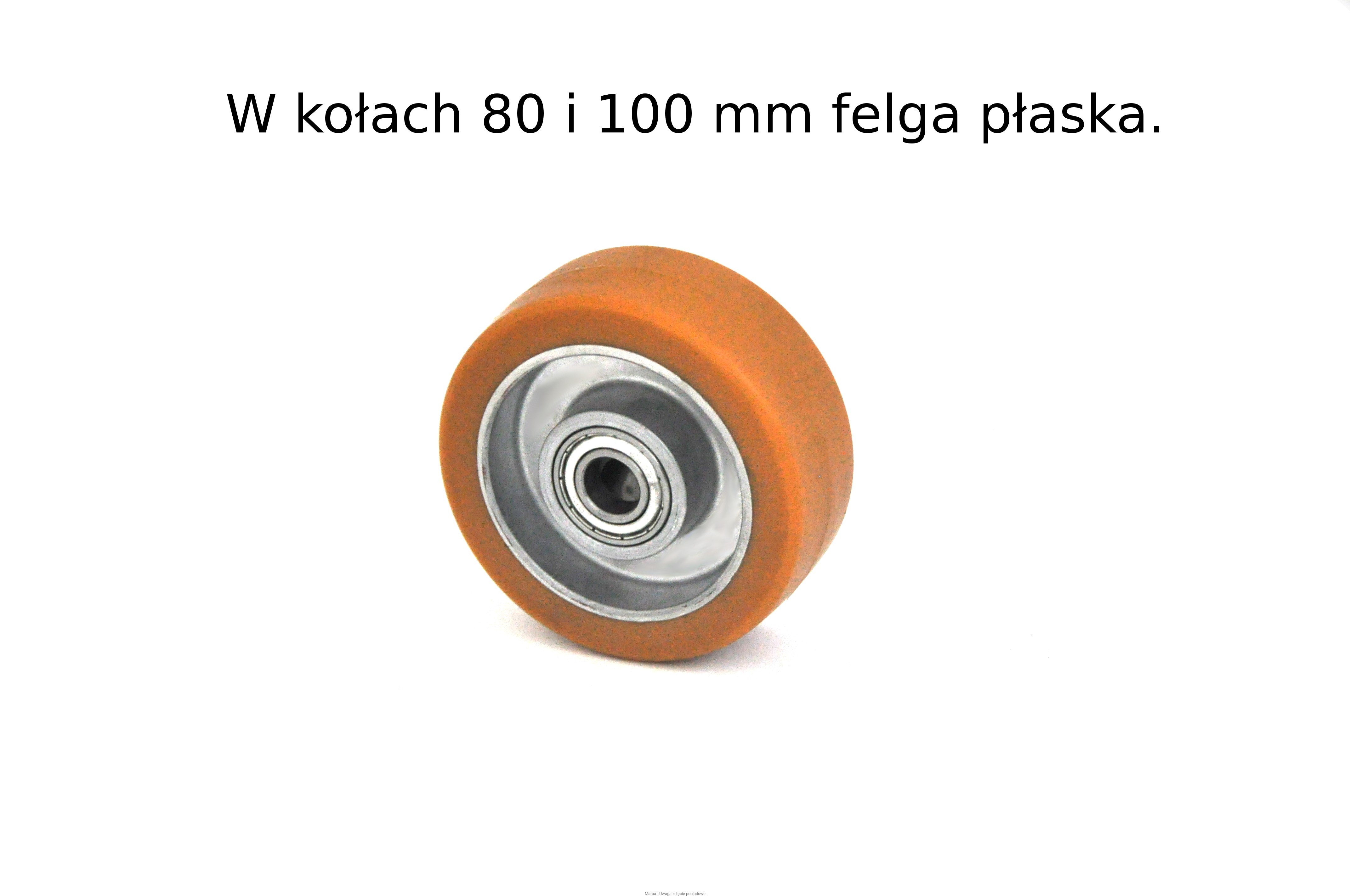 Koło : bieżnik z poliuretanu „MARBATHANE”®, niebrudzący, duży komfort jazdy, twardość 92° ShA, elastyczny, nie niszczący oraz nie brudzący posadzek, wytrzymały na ścieranie, przecięcia i dalsze rozrywanie, cichobieżny o małych oporach toczenia.