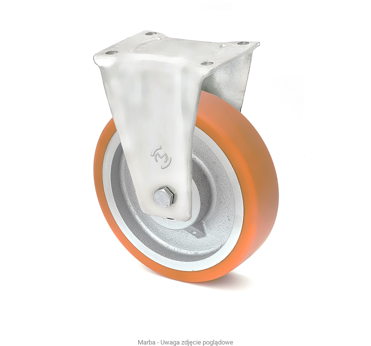 Koło : bieżnik z poliuretanu „MARBATHANE”®, niebrudzący, duży komfort jazdy, twardość 92° ShA, elastyczny, nie niszczący oraz nie brudzący posadzek, wytrzymały na ścieranie, przecięcia i dalsze rozrywanie, cichobieżny o małych oporach toczenia.