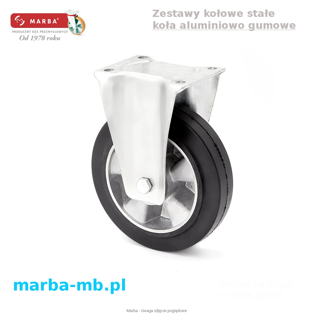 Koło : bieżnik z gumy czarnej „ELASTIK”® zwulkanizowany na piaście aluminiowej, duży komfort jazdy, twardość 68° ShA, elastyczny, wytrzymały na ścieranie, przecięcia i dalsze rozrywanie, cichobieżny o małych oporach toczenia, amortyzacja.